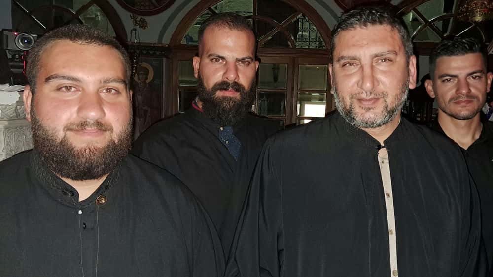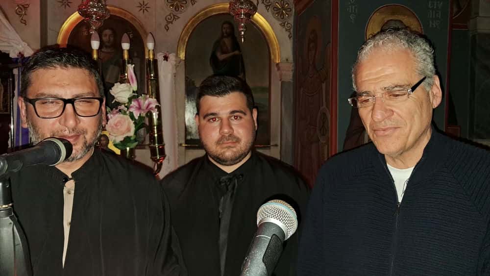 Τους πλαισίωσε χορός ισοκρατών αποτελούμενος από τους Μικέ Κυράννη, Άγγελο Κυράννη, Παναγιώτη Χατζηδάκη και Μανώλη Πολιά, συμβάλλοντας στη δημιουργία ενός αρμονικού και επιβλητικού ηχητικού συνόλου. Μαζί τους συμμετείχε και ο μικρός Δρόσος Μελάς, ενώ στο τελευταίο τροπάριο έλαβε μέρος και ο Μανώλης Μεϊμάρης.