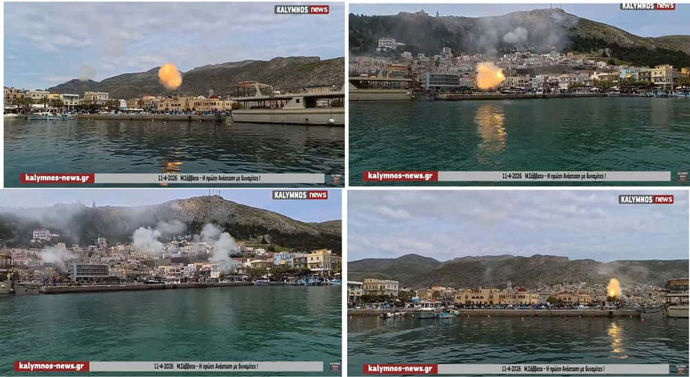 Το μεσημέρι του Μεγάλου Σαββάτου, η Κάλυμνος έκανε αυτό που ξέρει καλύτερα: μετέτρεψε την παράδοση σε θέαμα. Οι δυναμίτες έδωσαν ρυθμό, οι καμπάνες τον τόνο και το λιμάνι… την ένταση.