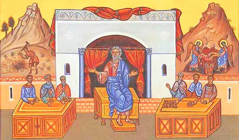 β) Των Ταλάντων (Ματθ. 25,14-30), που μας διδάσκει να είμαστε εργατικοί και πρέπει να καλλιεργούμε και να αυξήσουμε τα πνευματικά μας χαρίσματα.