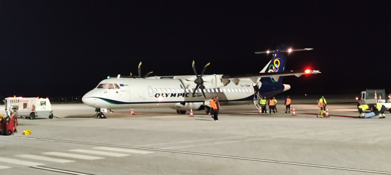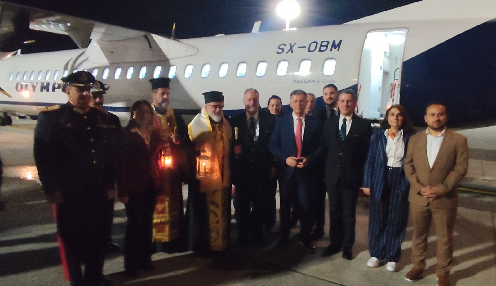 Η άφιξη του Αγίου Φωτός πραγματοποιήθηκε αρχικά στο αεροδρόμιο της Κω στις 21:30, με έκτακτη πτήση της Olympic Air από τη Σάμο. Εκεί, το υποδέχθηκαν με κάθε επισημότητα ο Σεβασμιώτατος Μητροπολίτης Κώου και Νισύρου κ. Ναθαναήλ, ο Δήμαρχος Κω Θεοδόσης Νικηταράς, η Έπαρχος Κω Ντίνα Σβύνου, καθώς και εκπρόσωποι των Στρατιωτικών Αρχών, των Σωμάτων Ασφαλείας και της Τοπικής Αυτοδιοίκησης.