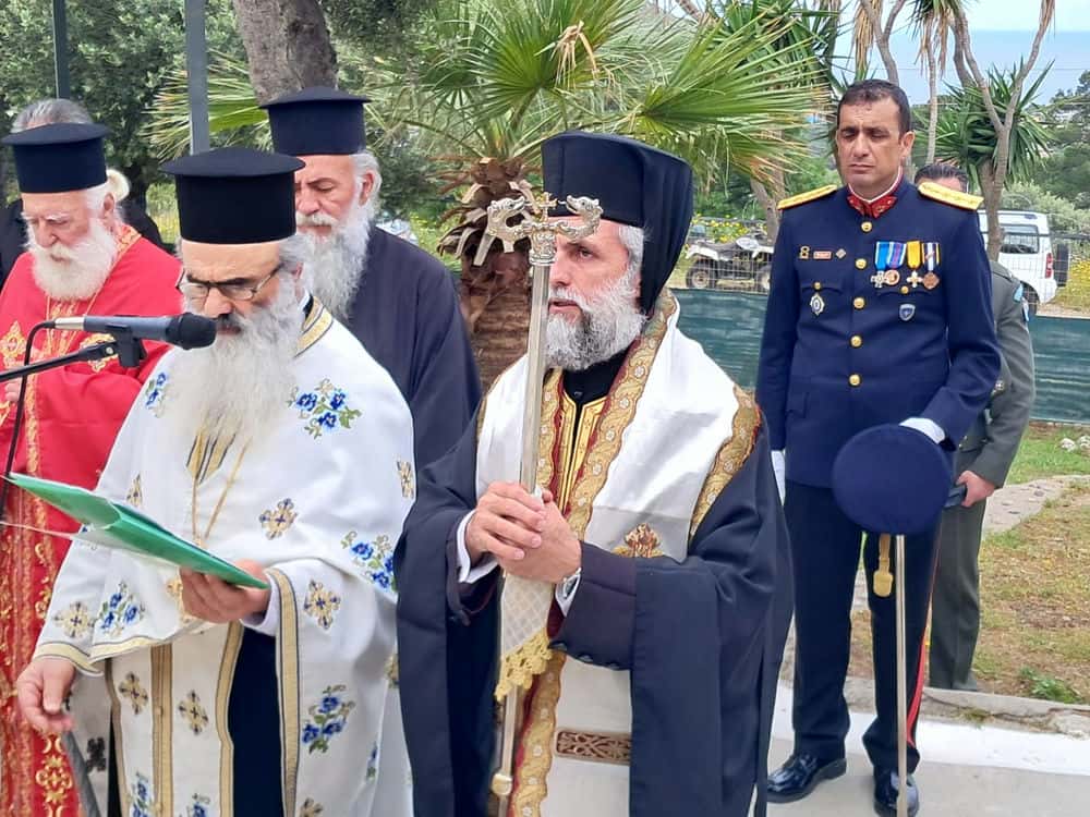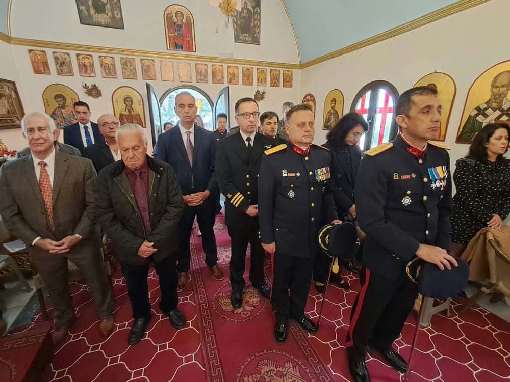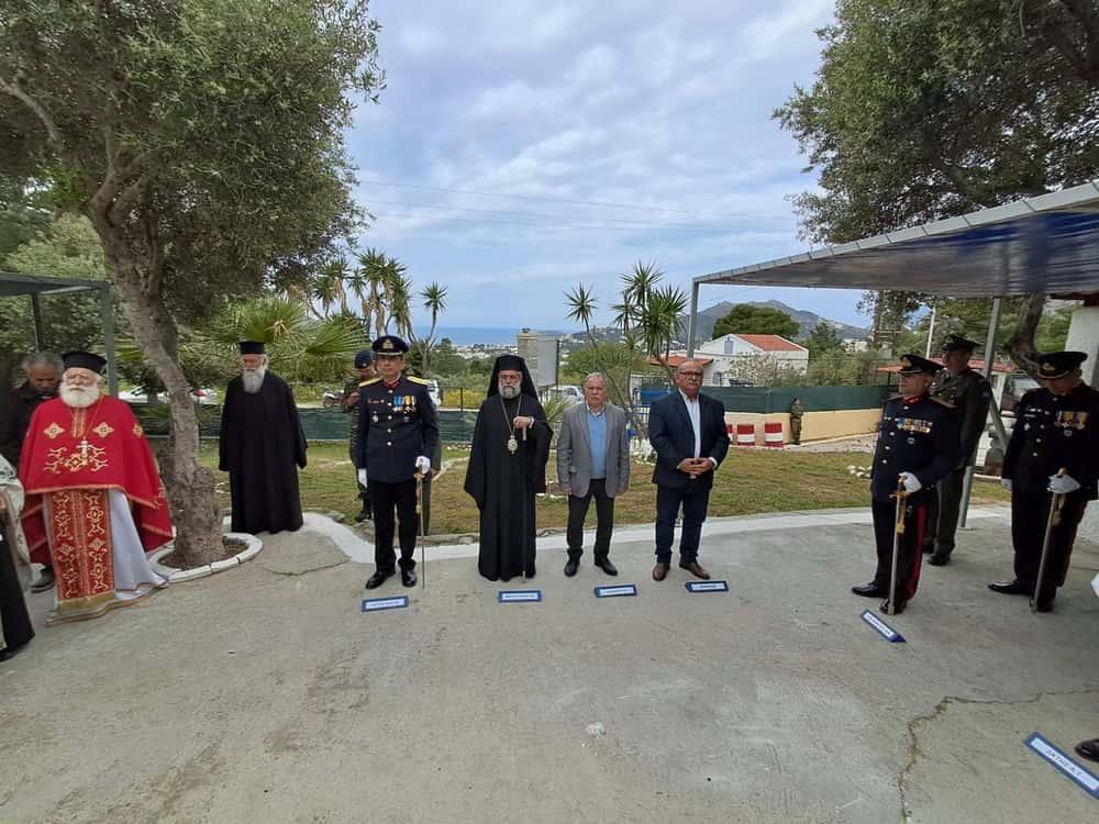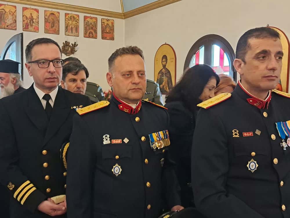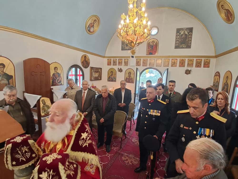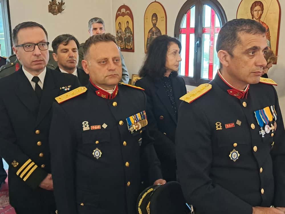 Η θρησκευτική τελετή ξεκίνησε στο εκκλησάκι του Αγίου Γεωργίου εντός του στρατοπέδου, όπου τελέστηκε η Θεία Λειτουργία από τον εφημέριο του Ιερού Ναού Αρχαγγέλου, π. Τίτο Καμπούρη.