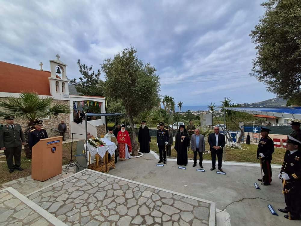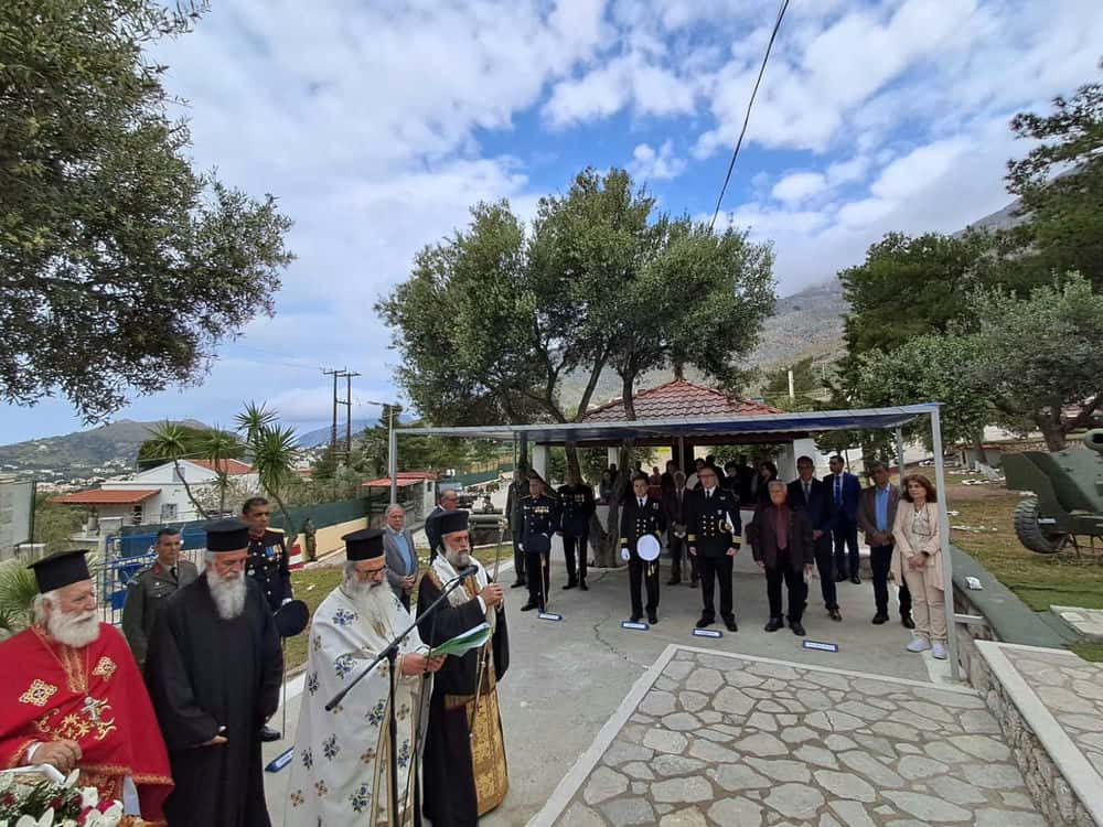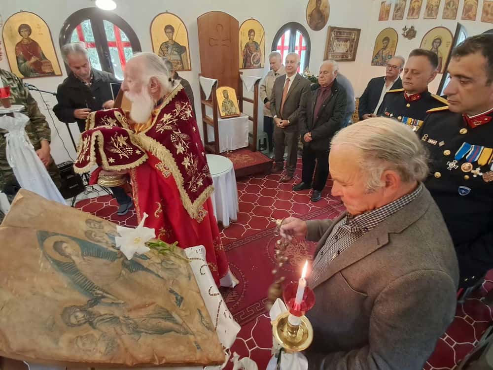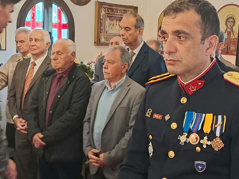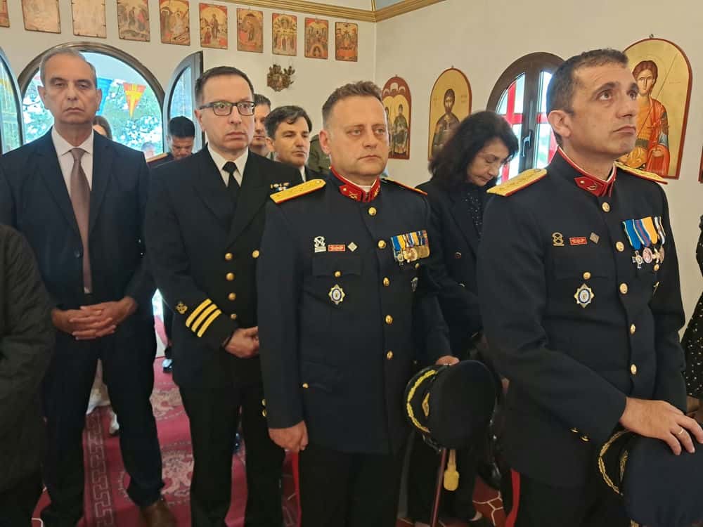 Η θρησκευτική τελετή ξεκίνησε στο εκκλησάκι του Αγίου Γεωργίου εντός του στρατοπέδου, όπου τελέστηκε η Θεία Λειτουργία από τον εφημέριο του Ιερού Ναού Αρχαγγέλου, π. Τίτο Καμπούρη.