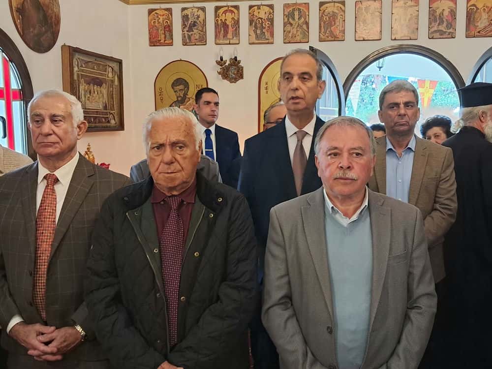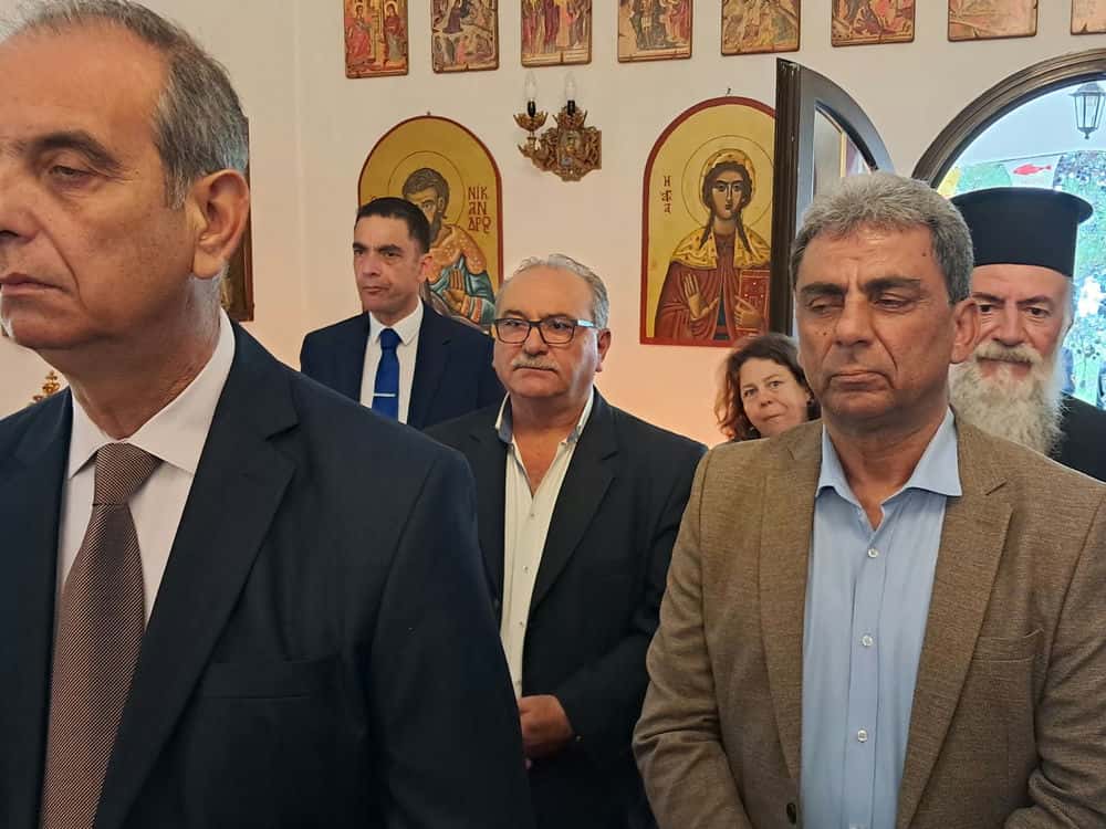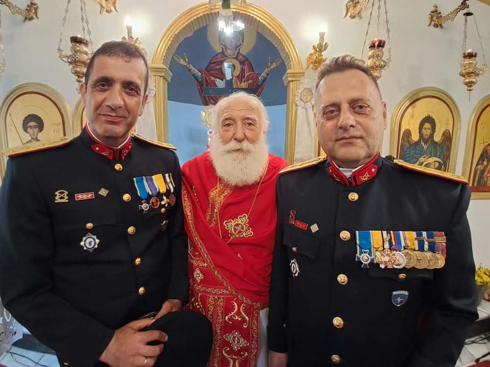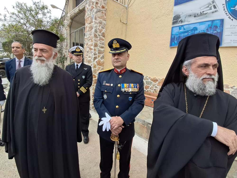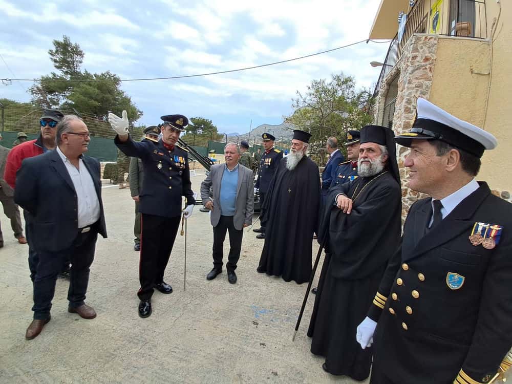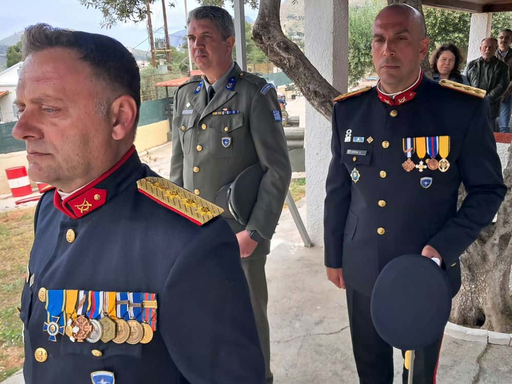 Η θρησκευτική τελετή ξεκίνησε στο εκκλησάκι του Αγίου Γεωργίου εντός του στρατοπέδου, όπου τελέστηκε η Θεία Λειτουργία από τον εφημέριο του Ιερού Ναού Αρχαγγέλου, π. Τίτο Καμπούρη.
