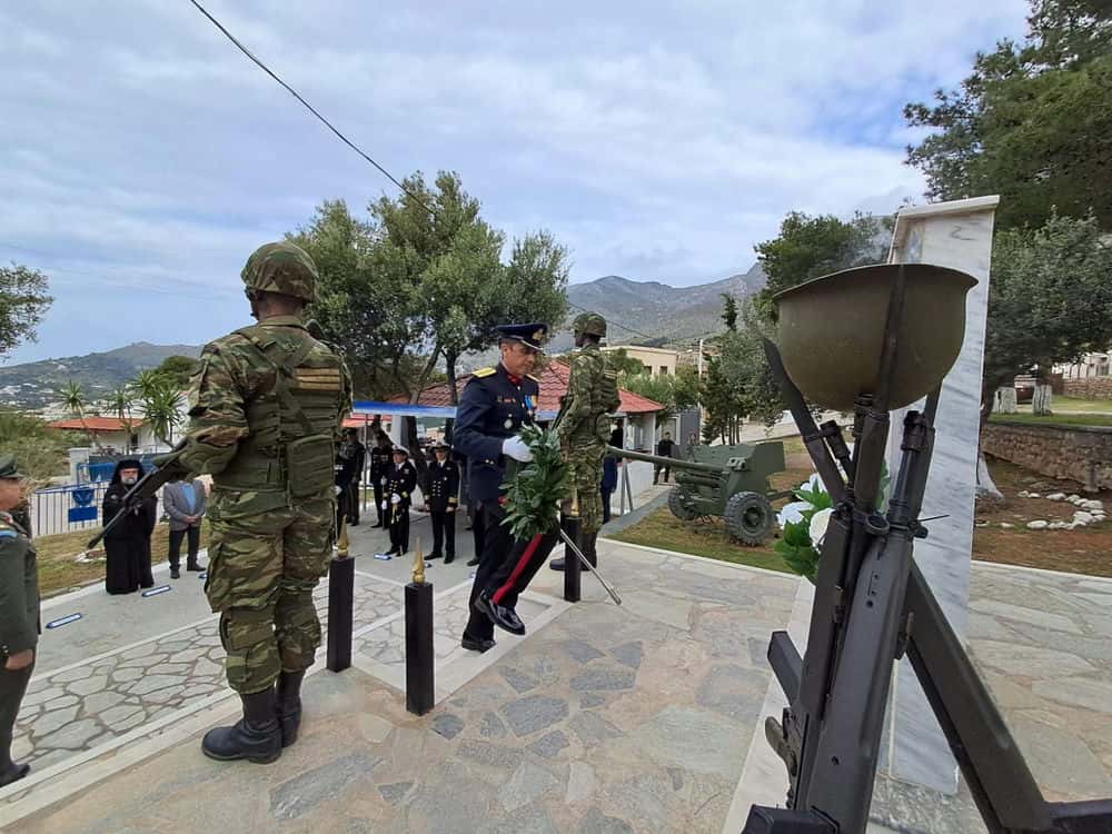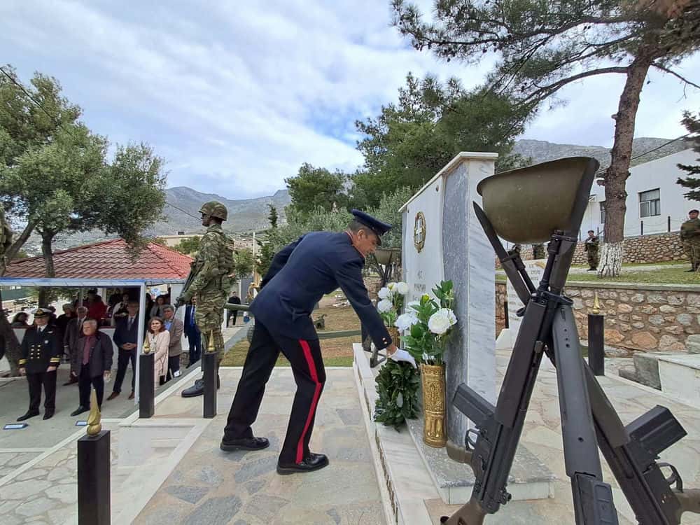 Ακολούθησε η ανάγνωση της ημερήσιας διαταγής του Αρχηγού ΓΕΣ από τον τελετάρχη της εκδήλωσης Ταγματάρχη (ΠΖ) Αναστάσιο Κορφιά και η κατάθεση στεφάνου από τον Διοικητή του Συντάγματος, σε ένδειξη τιμής και μνήμης..