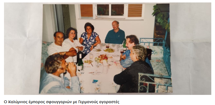 Αυτή η ίδια ναυτοσύνη έκανε το νησί πρώτη δύναμη σε όλη την Ελλάδα στα παράκτια αλιευτικά, «ειδικά στην αλίευση ξιφιών και τόνων», και τους έστειλε σφουγγαράδες ως τη Φλόριντα και τις Μπαχάμες. «Το Tarpon Springs στη Φλόριντα και οι Μπαχάμες ήταν γεμάτες Καλύμνιους» αναφέρει