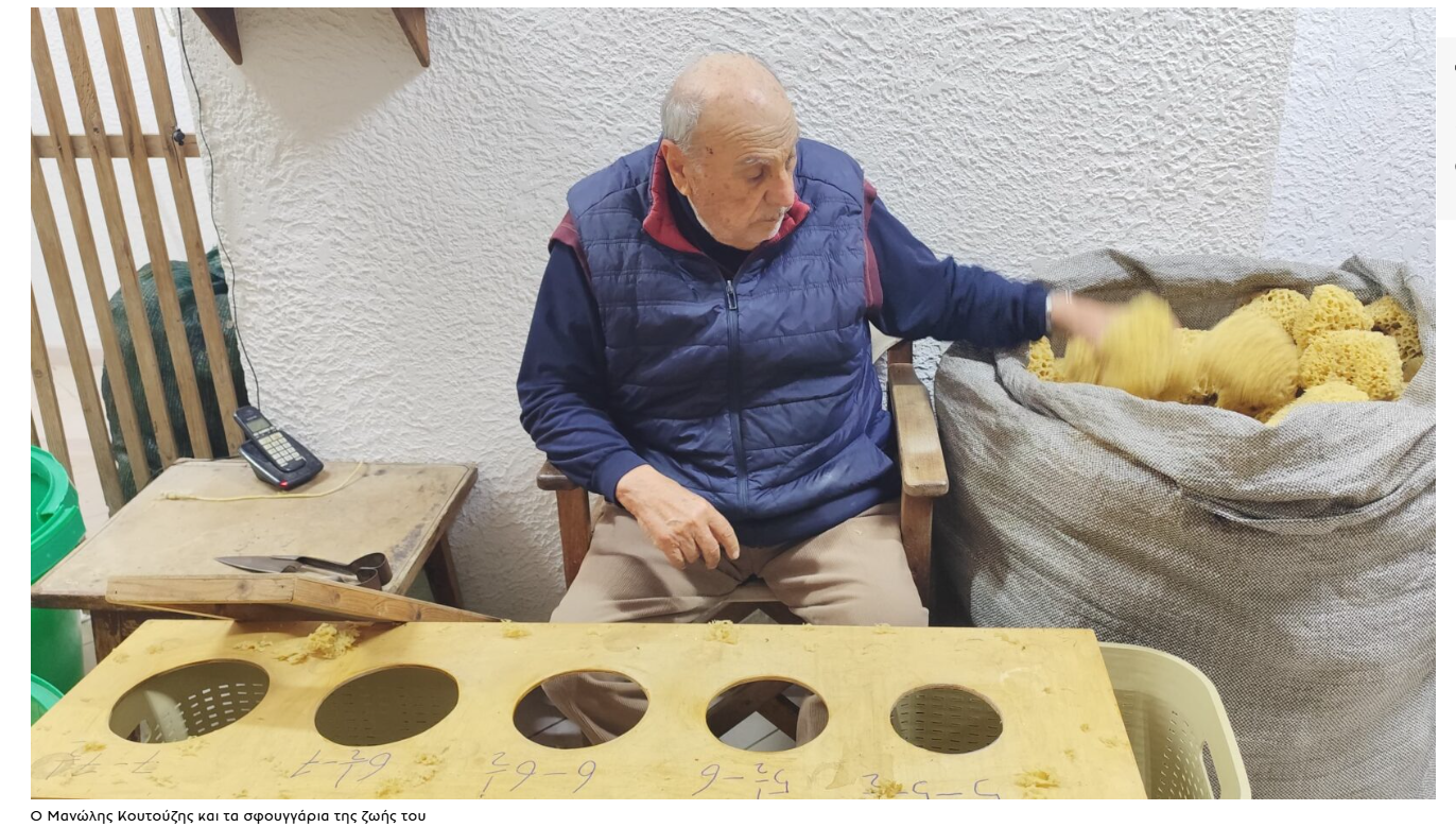 Ο 82χρονος Μανώλης Κουτούζης ζει από το φυσικό σφουγγάρι από το 1955 και μας αφηγείται μια ζωή που την έστιψε σαν το προϊόν του επαγγέλματός του.