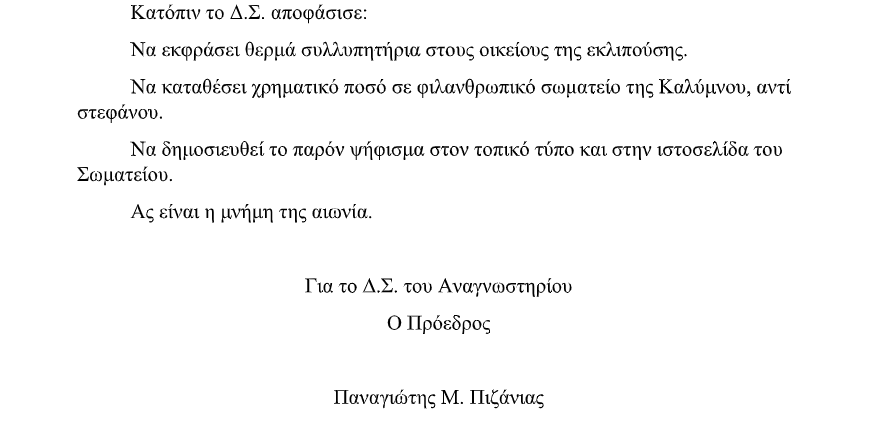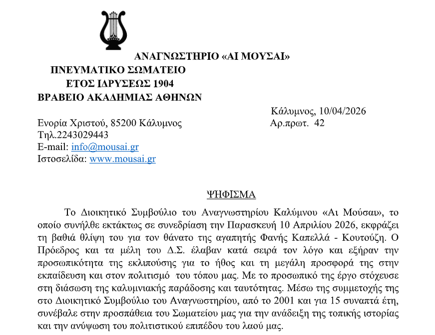 Ψήφισμα του Αναγνωστηρίου “ΑΙ ΜΟΥΣΑΙ” για το θάνατο της Φανής Καπελλά-Κουτούζη